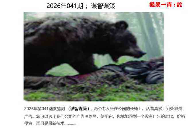 ): 两个老人坐在公园的长椅上。活着真累,到处都是广告。您可以选用我们公司的广告消除器。使用它,你就能回到一个没有广告的时代。价格便宜,而且是最新技术........本期图片会给我们带来什么样的玄机呢?